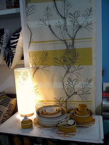 The nature of the business is screen printing "the old fashioned way". They enjoy working with linen, hemp and organic cottons. Awesome furnishing fabrics that make me want to redecorate my house!