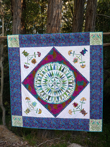 ReplyDeleteIt's a beautiful quilt. The design is stunning and the colours and fabrics are gorgeous. The peacocks are perfect. Great idea to send it to a Long Arm quilter when you are unsure. It has worked out well.